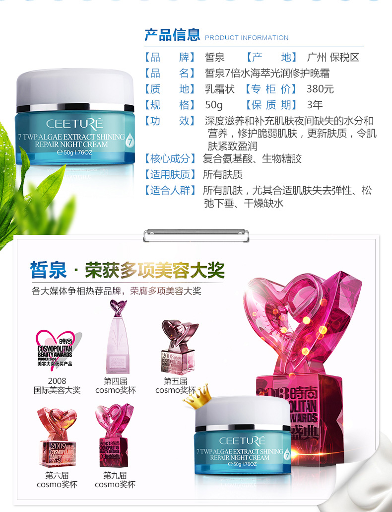 皙泉 7倍水光润水凝霜50g(清爽型)乳霜质地、平衡水油、清爽易吸收、轻盈嫩滑透...