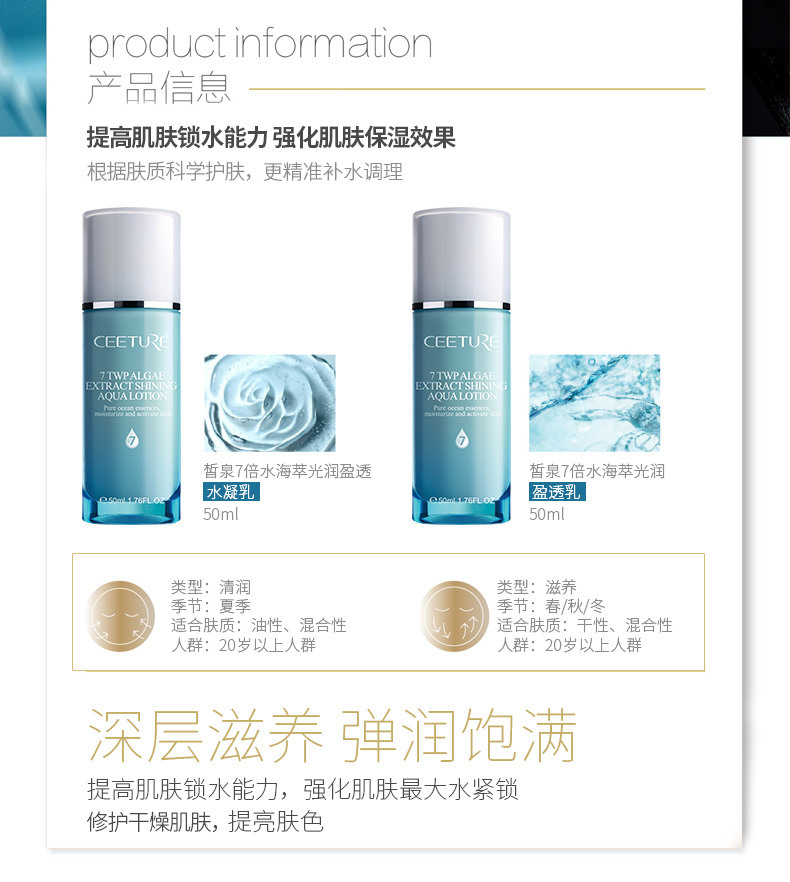 皙泉 7倍水海萃光润盈透水凝乳50ml(清爽型)平衡水油、深层补水、光润透亮、通...