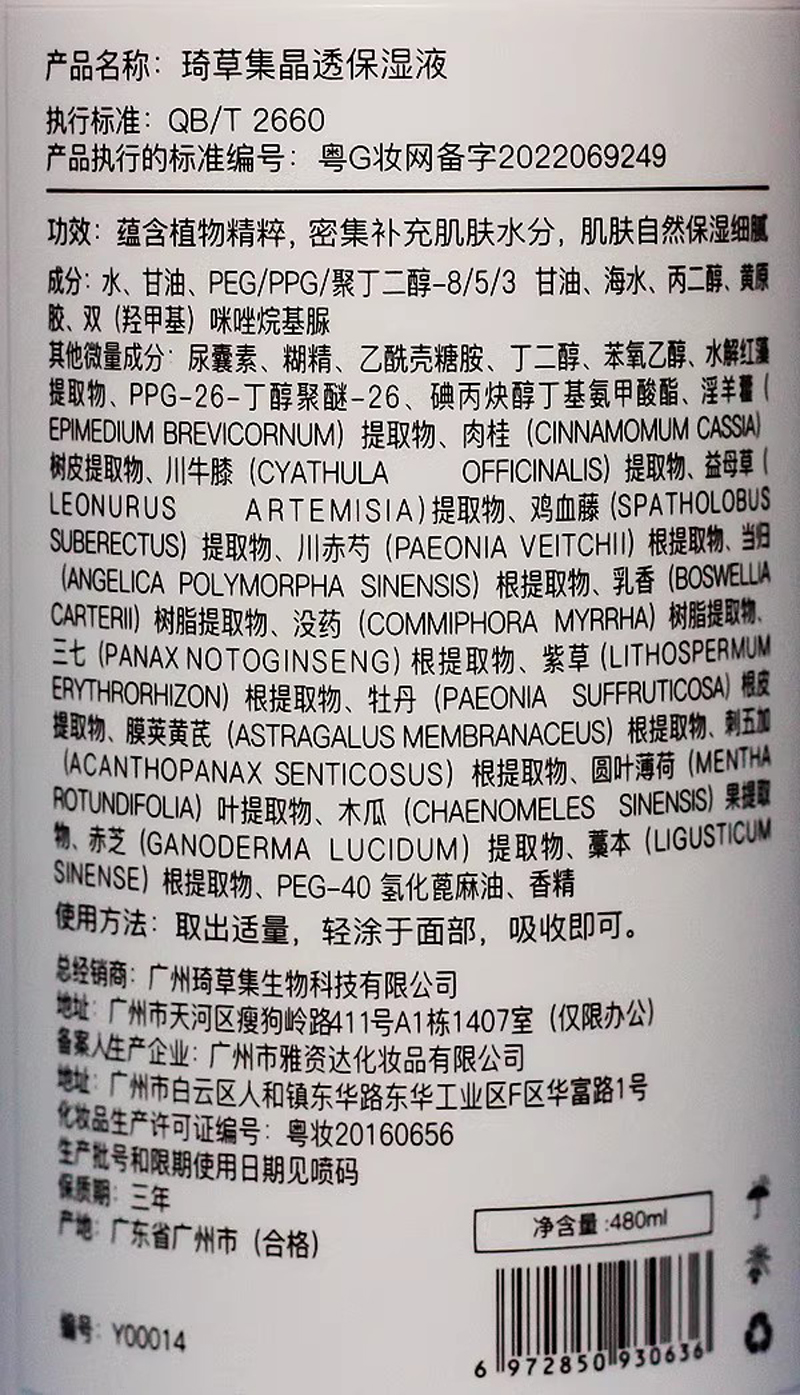 琦草集 保湿赋颜柔肤水100ml 柔润滑爽、保湿锁水、透亮水润