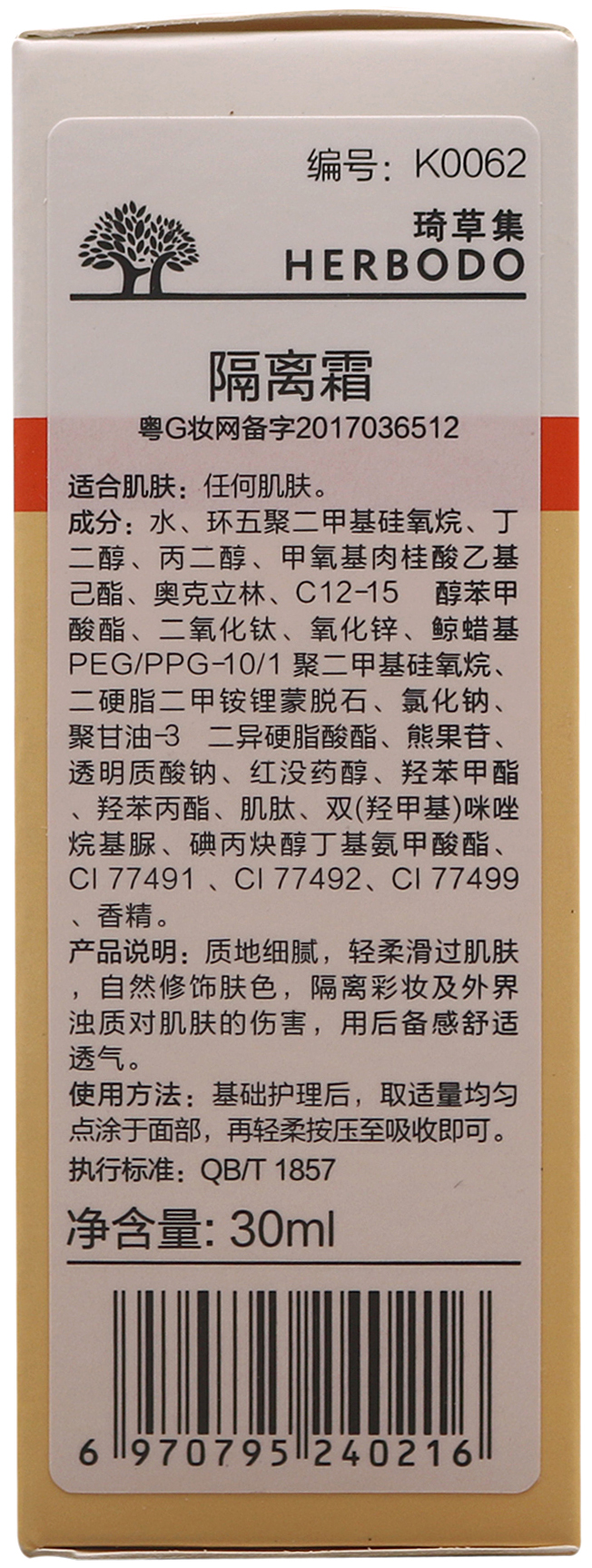 产品名称:琦草集 隔离霜 30ml