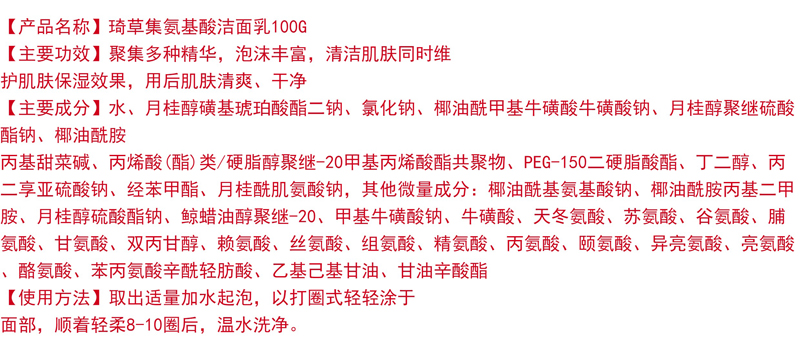 产品名称:琦草集 氨基酸洁面乳100ml(舒悦洁面乳)