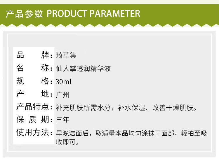 琦草集 仙人掌透润精华液30ml 补充水分、补水保湿、改善干燥肌肤