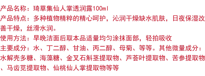 琦草集 晶透保湿液480ml(莹皙保湿液)保湿滋润、提亮肤色、柔软光滑