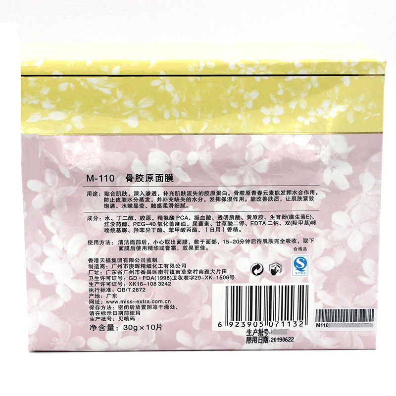 产品用途:贴合肌肤,深入渗透,补充肌肤流失的胶原蛋白。骨胶原青春元素能发挥水合作用,防止皮肤水分蒸发,并补充缺失的水分,发挥保湿作用。能改善肌肤,让肌肤紧致饱满、水嫩晶莹、触感柔滑细腻。