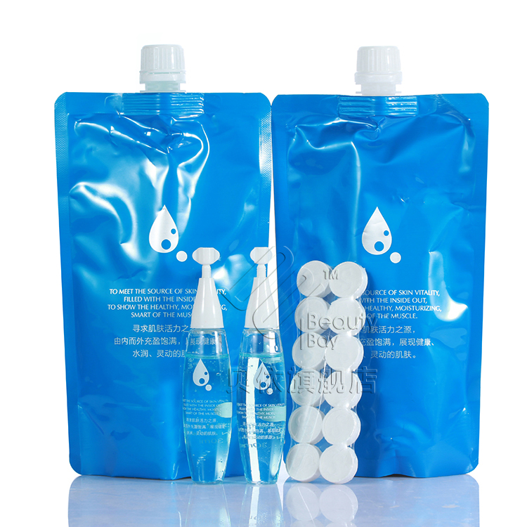 3.取【1-2ml水动力动力精华液】与20ml爽肤水或者鲜牛奶调均匀,放入 丝柔面膜纸 浸透 取出 盖在第1层补水膜之上,作为肌肤第2层补水膜。