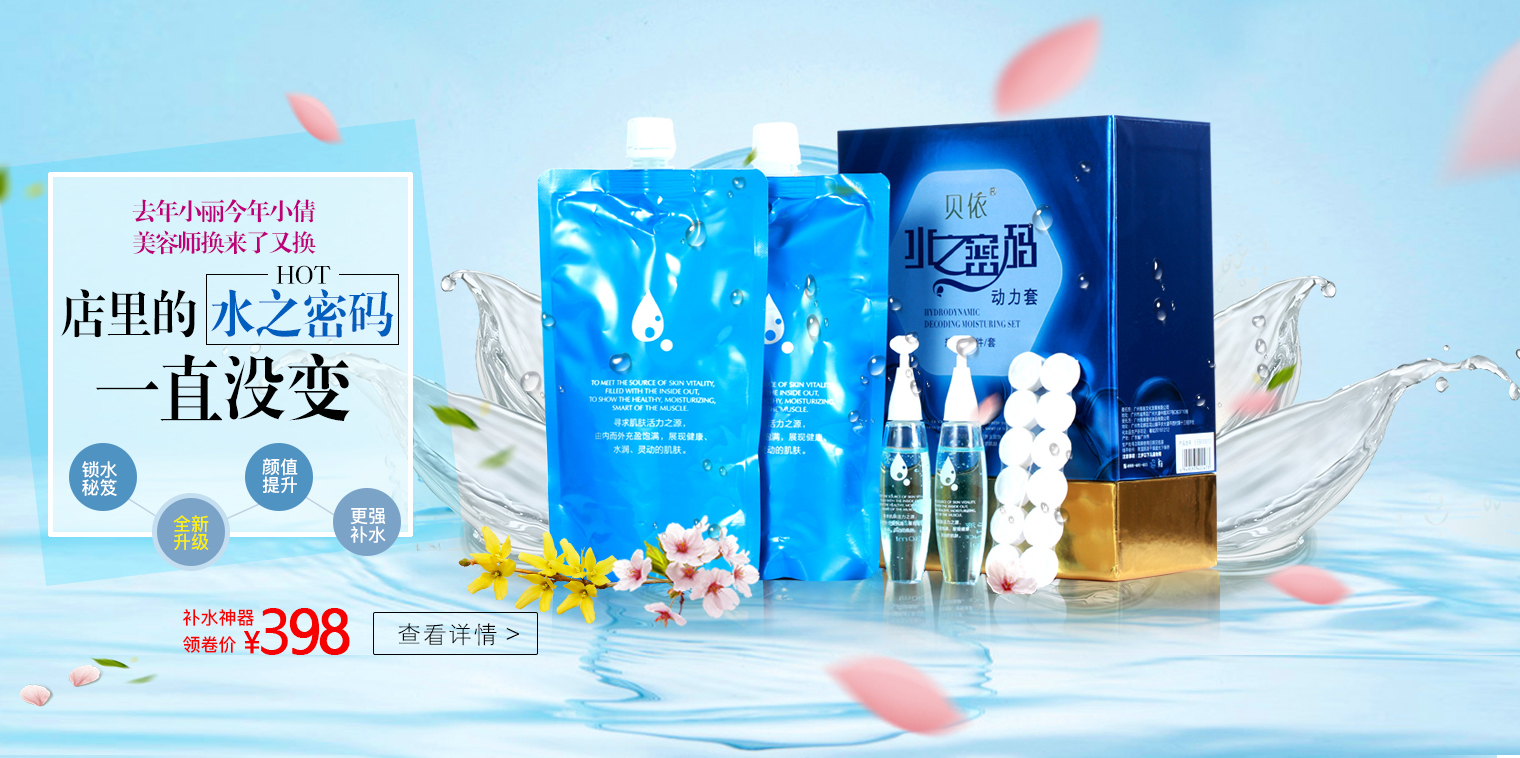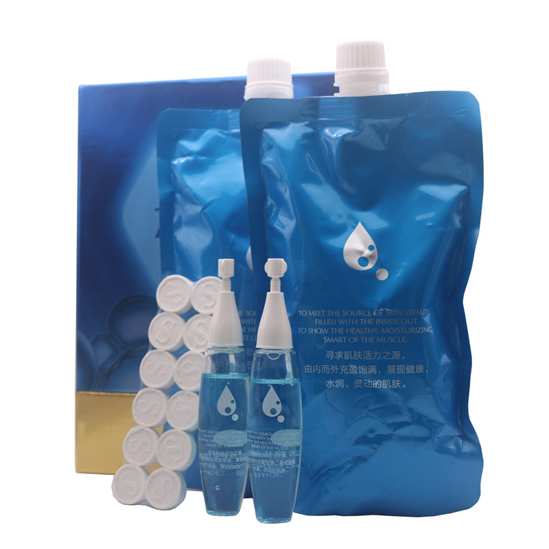 5.清洁爽肤后取适量【1-2ml水动力精华液】涂于肌肤至吸收,根据肤质配合相应的润肤产品(水+精华+乳液+面霜)。