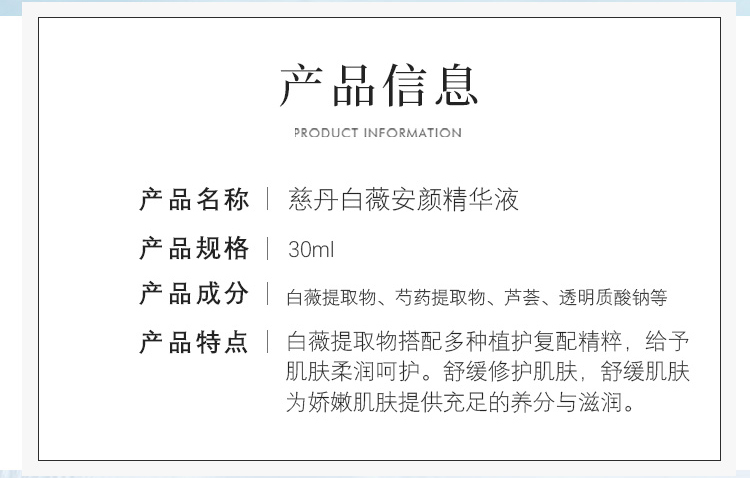 慈丹 白薇安颜精华液30ml 舒缓红敏,滋养亲肤,补水锁水,强韧肌底,缓解干痒红痛皮肤