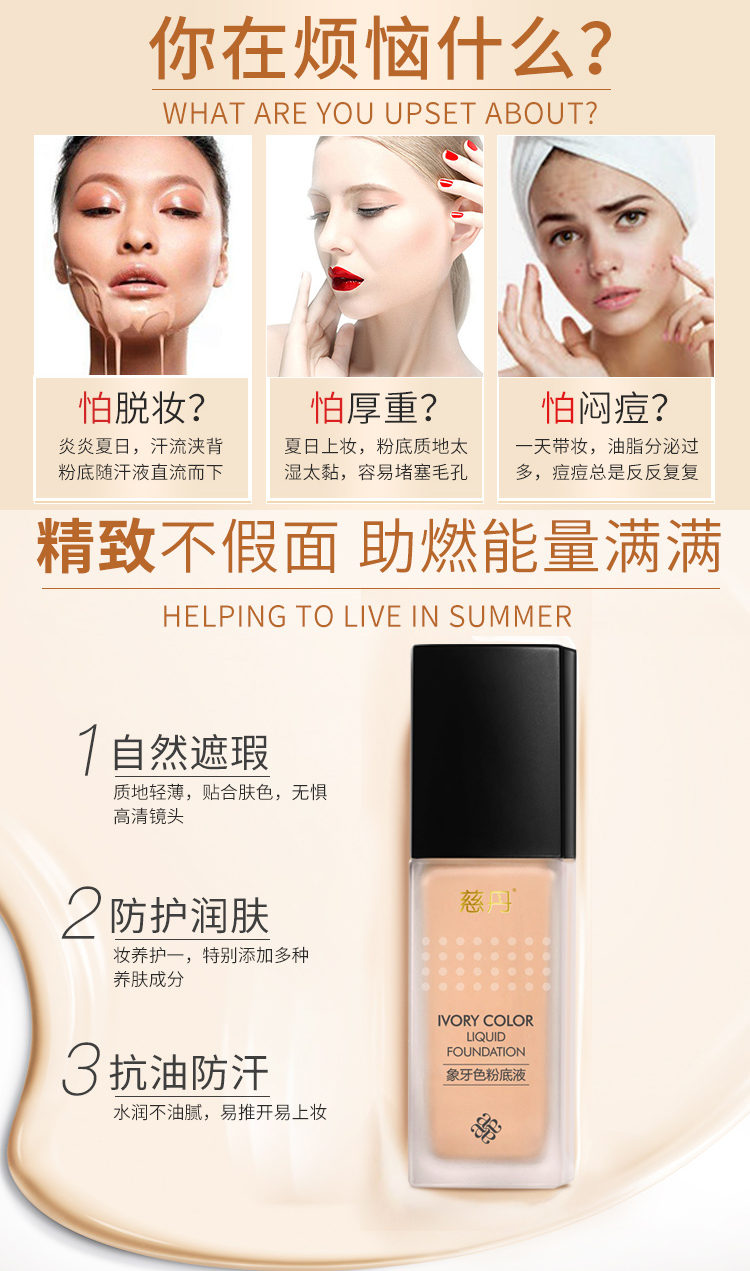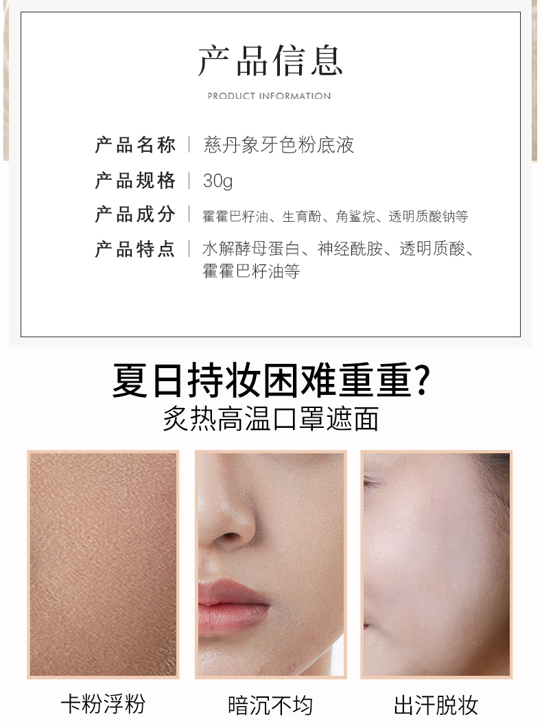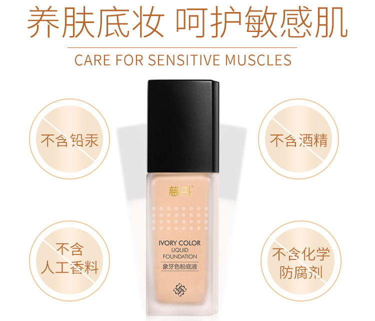 慈丹 象牙色粉底液30g(适合偏红/苍白/偏黄肌肤)隔离遮瑕、修颜亮白、提亮肤色、水润服帖