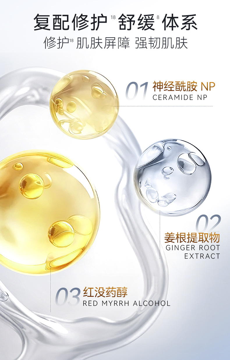慕斯质地,润而不腻,肤感舒适,感弱肌肤也可用,肌肤水润透亮,温和不刺激,复配修护舒缓体系,修护肌肤屏障,强韧肌肤