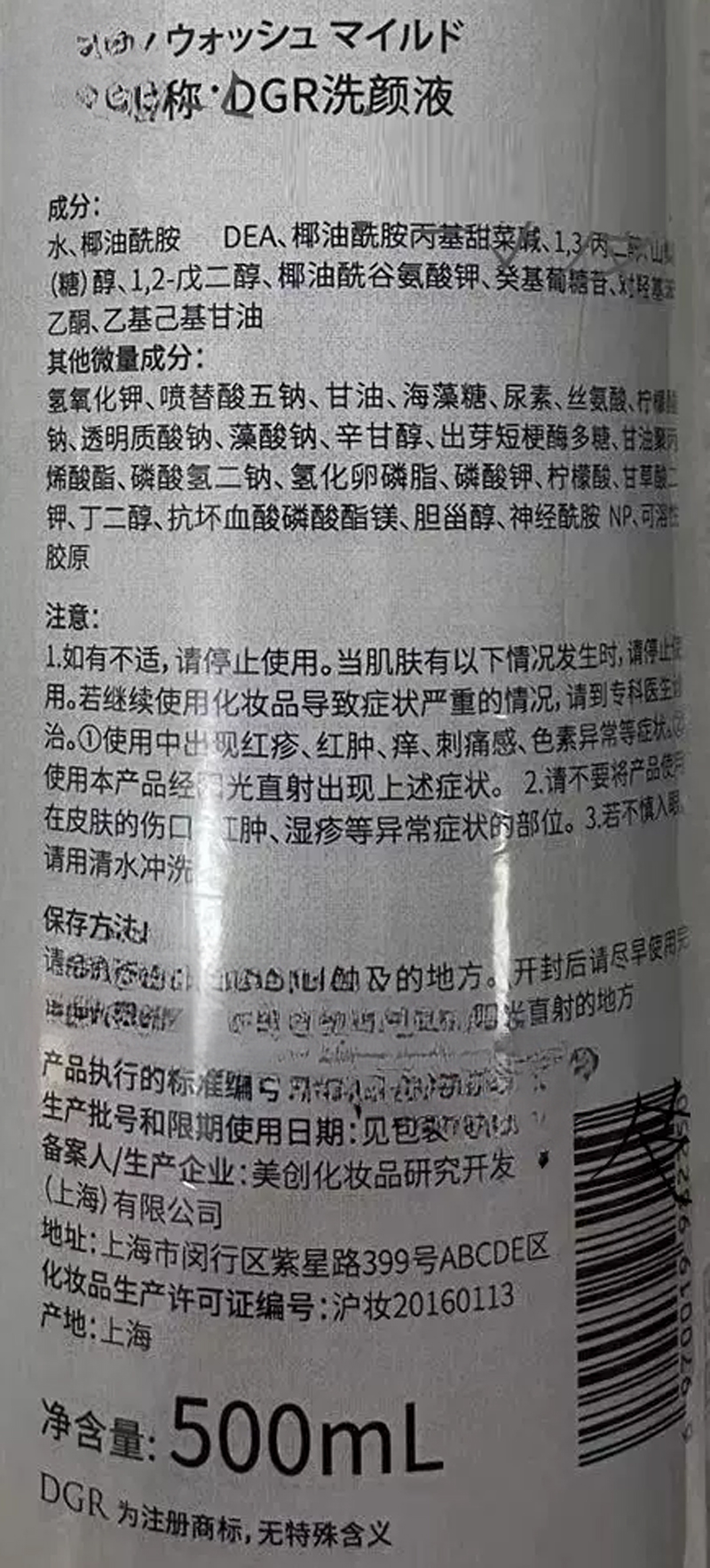 诚美 DGR洗颜液500ml 泡沫细腻,弱酸性,清洁毛孔及多余油脂,补水滋润