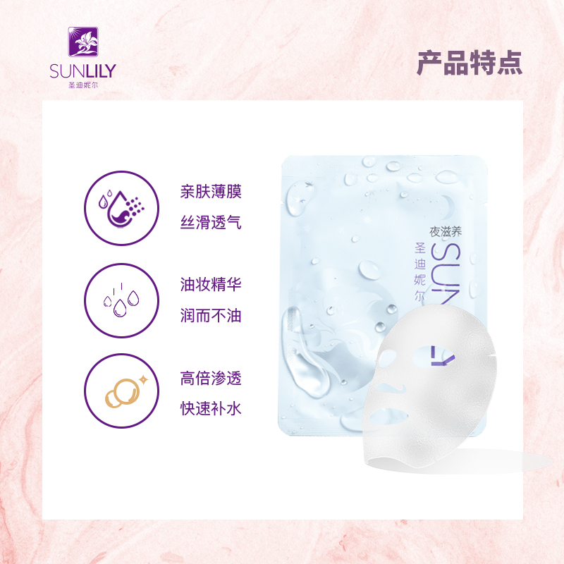 采用蚕丝亲肤薄膜,触感柔软贴肤透气,清爽舒适的精华滋养缺水肌肤,令肌肤水样畅享,沁润盈透(取出面膜,敷于面部,轻轻调整至膜布贴合肌肤,敷15-20分钟,取下面膜,用指腹轻轻按摩,帮助精华吸收)