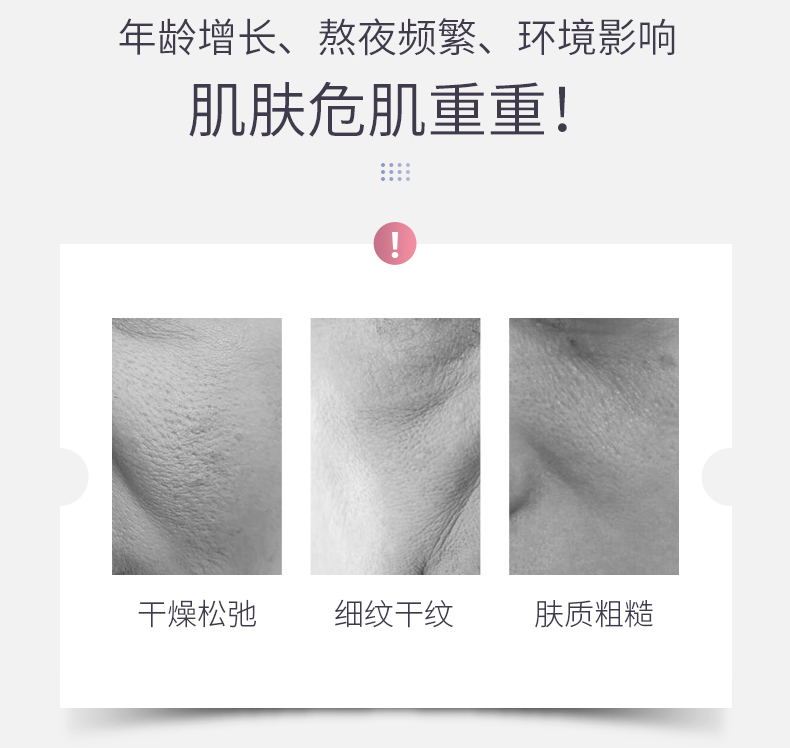 含多肽胶原蛋白精华,能快速渗透肌肤,让肌肤持久滋润,补充胶原蛋白,弹力纤维和透明质酸,提高肌肤的含水量,加强皮肤的弹性,呈现青春光滑的容颜。(每天早晚用完爽肤水后,取适量产品均匀涂于全脸至吸收)