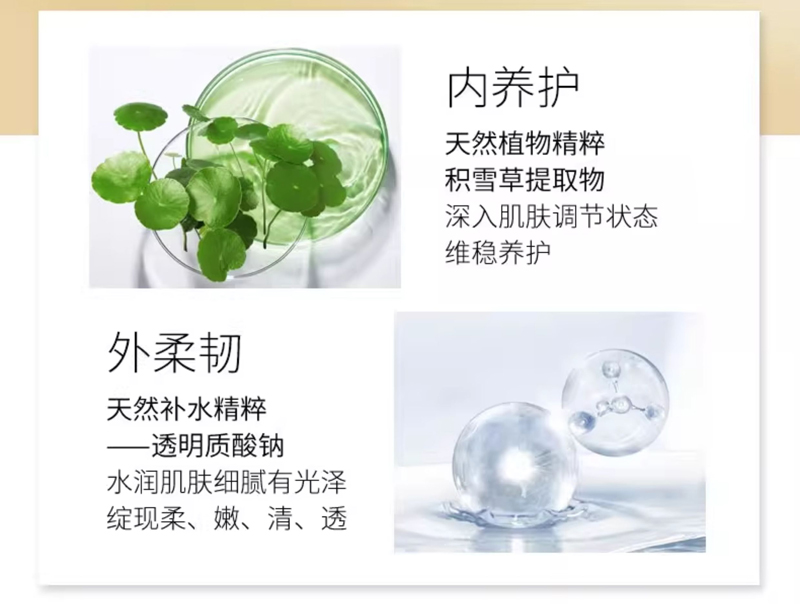 锁水,有效提高肌肤活力,增加肌肤紧实度,减缓细坟,使肌肤水嫩、年轻富有弹性