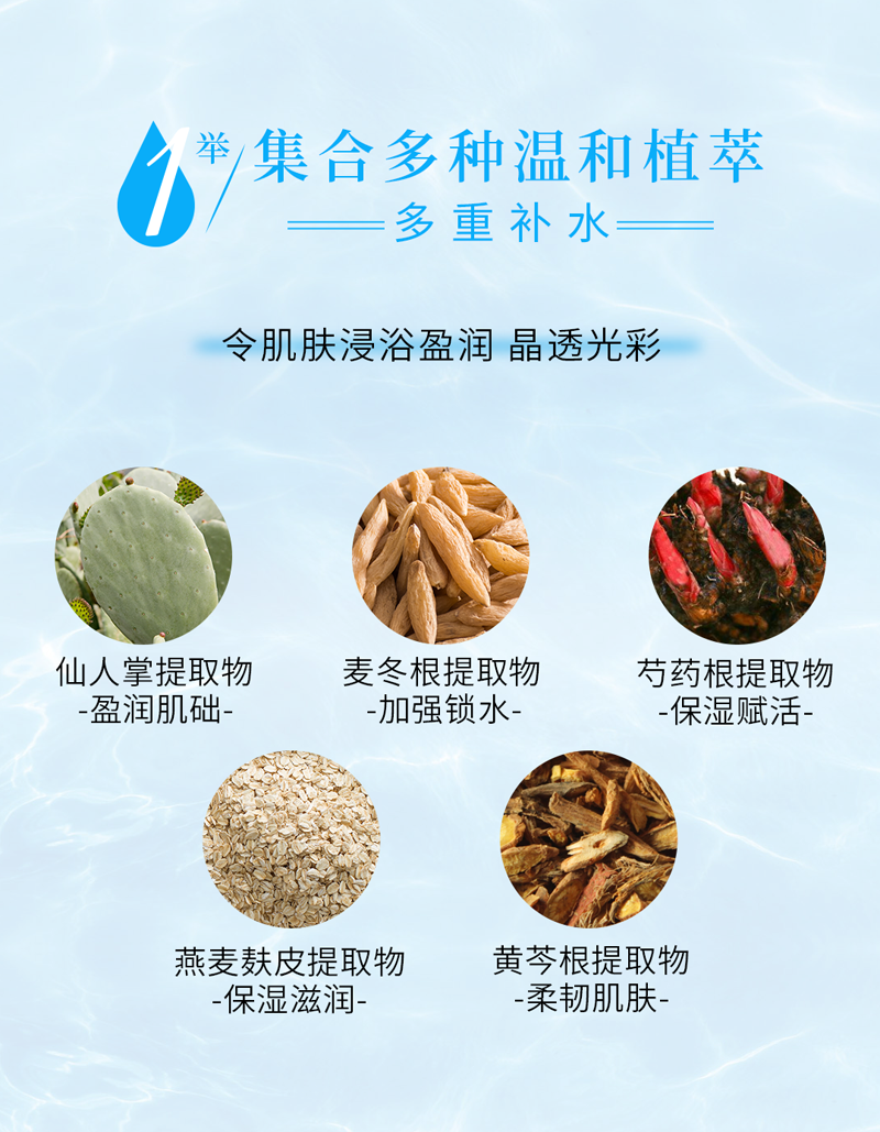 含有植物取精华,搭配多种透明质酸钠,沁润肌肤,补充肌肤水分,令肌肤靓丽水嫩