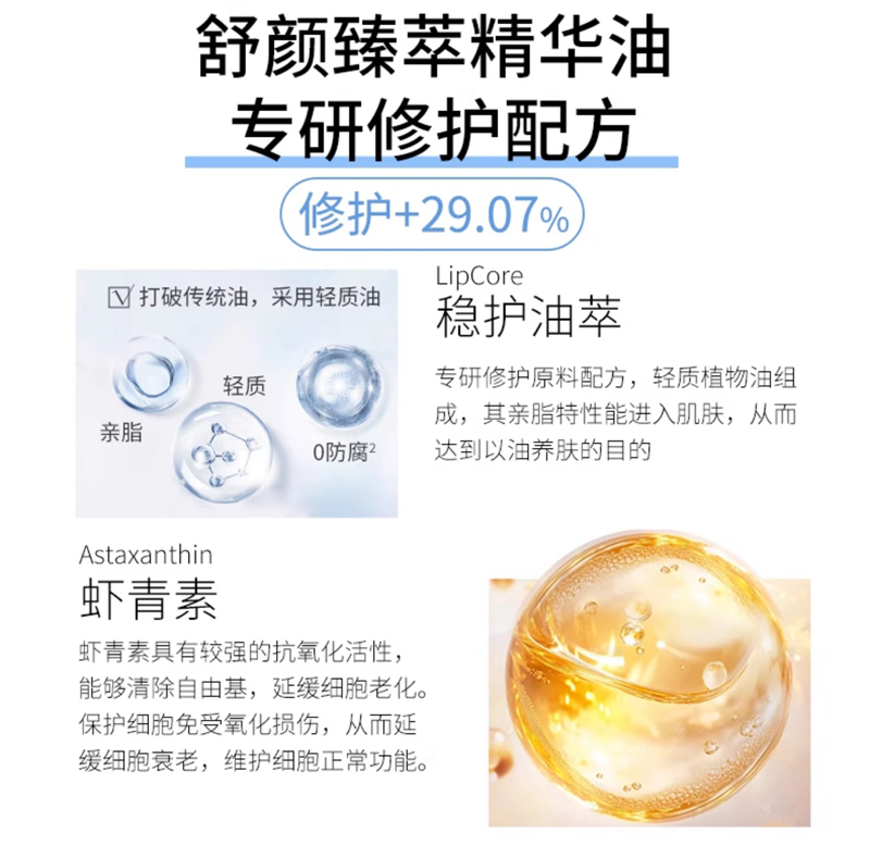 宜人的气味,丝滑的肤感,具修护、紧致、舒缓功效,可改善细纹,令肌肤靓丽水润有光彩