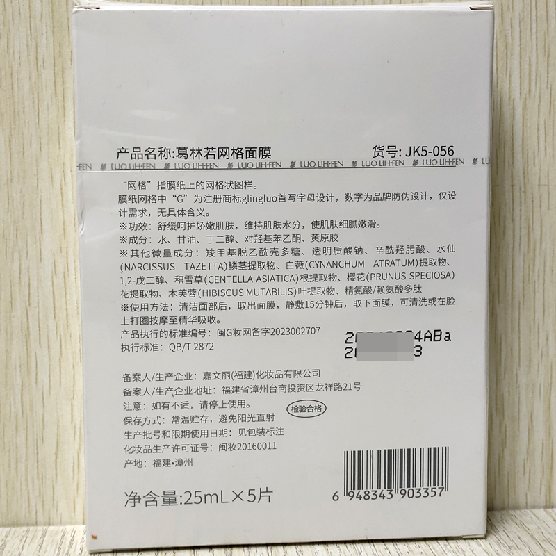 葛林若 网格面膜25ml*5片 补充水分和养分、提亮肤色、水润透亮、弹润幼滑、晒后修护