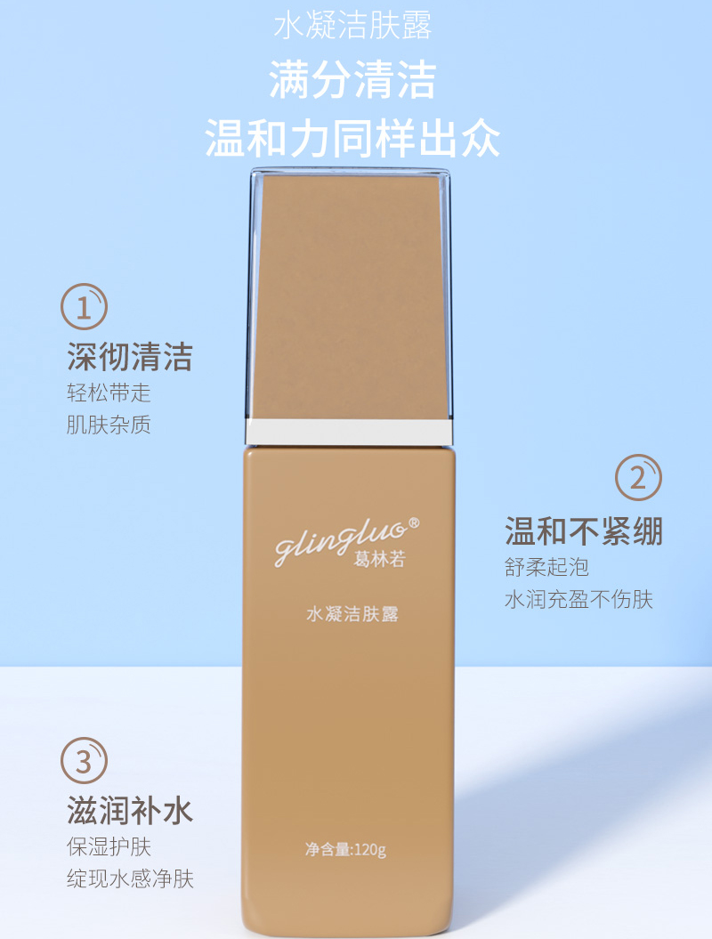 葛林若 水凝洁肤露120ml 舒柔泡沫、深彻清洁、温和不紧绷、滋润补水、水润充盈不伤肤
