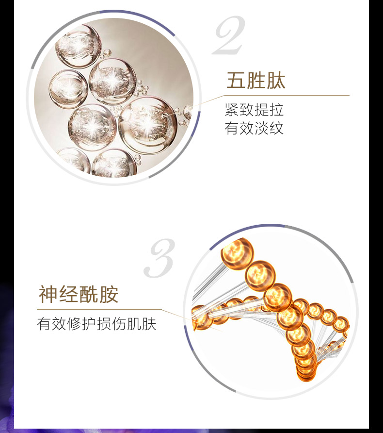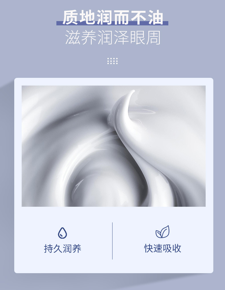 补充胶原纤维,淡化眼周肌肤皱纹、干纹,促进眼周血液循环,改善浮肿,收敛肌肤,提升下垂的眼角,使眼部肌肤平滑紧致、柔润。 蕴含红酒中抗衰元素白藜芦醇,修护眼周受损微循环血管,促进眼周血液循环,能有减淡黑眼圈、浮肿及难缠细纹,并持久紧致眼部肌肤不长皱纹