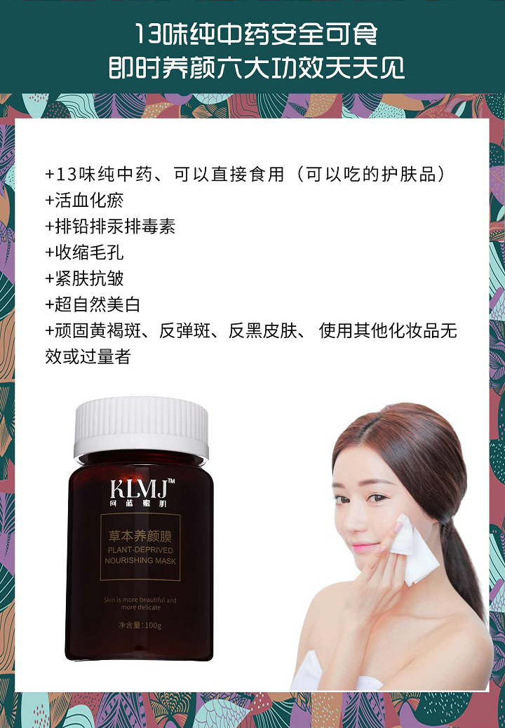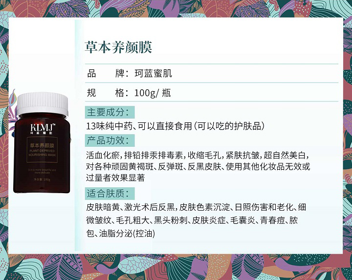 珂蓝蜜肌 草本净美养颜膜100g 焕亮肤色、滋养细嫩、光泽红润、柔滑透亮