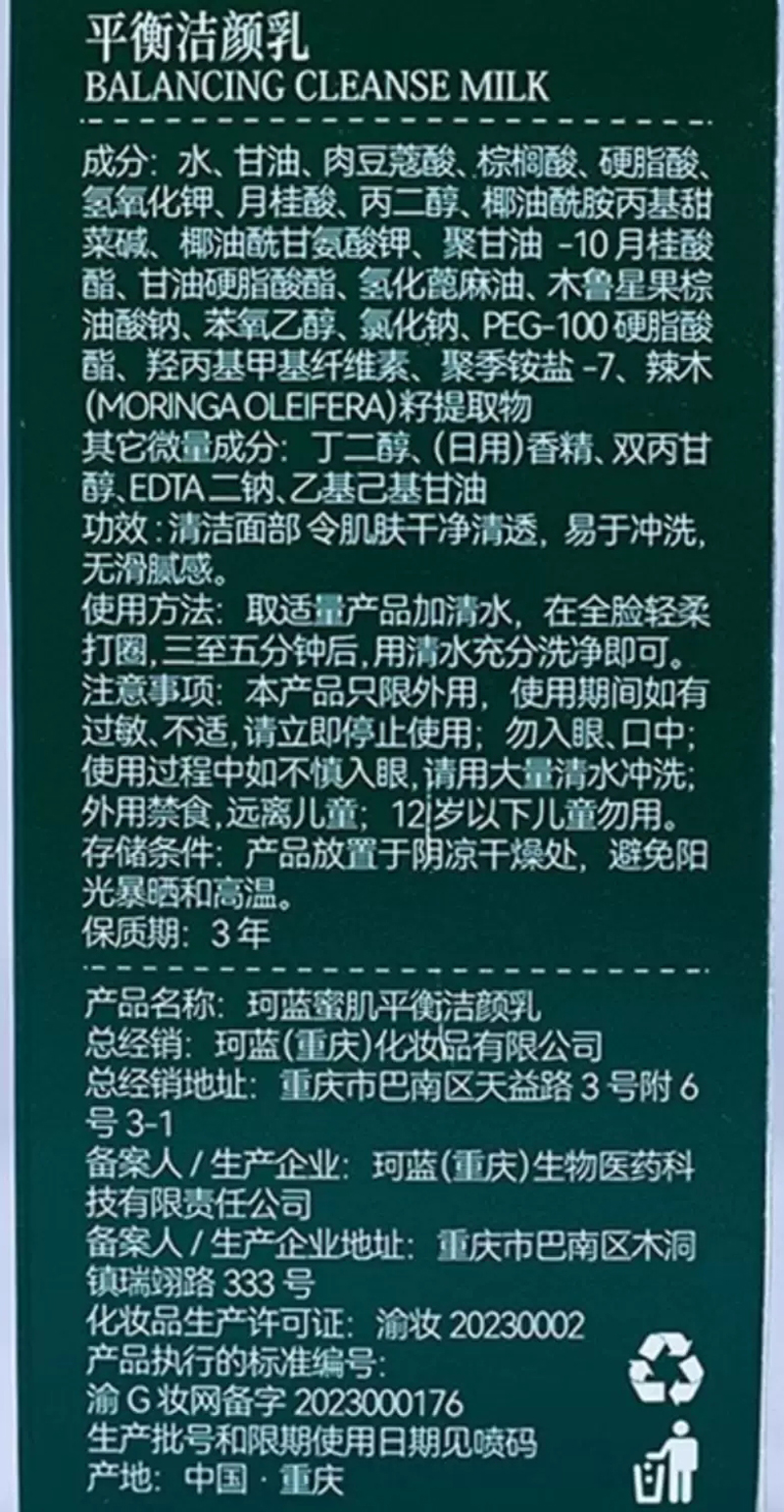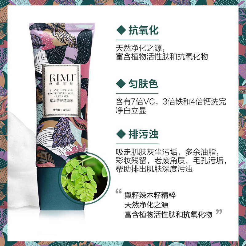 珂蓝蜜肌 平衡洁面乳100ml(草本防护洁面乳)泡沫绵密、深层清洁、提亮肤色、排浊净化