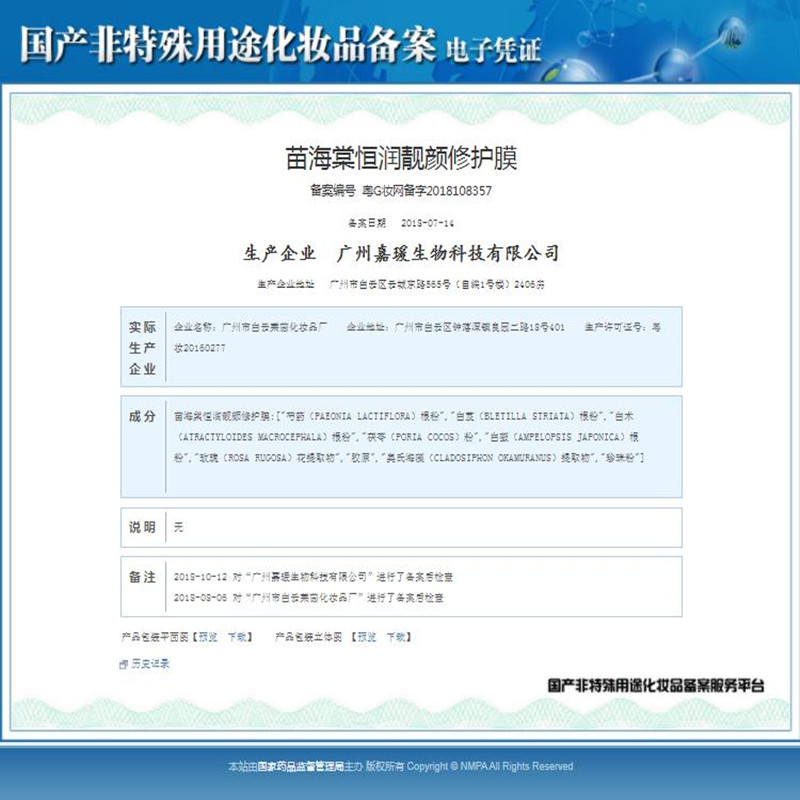 苗海棠 靓颜修护膜粉10g*10包 淡化黑色素,淡化斑点,防止返黑,改善黯哑粗糙肌肤