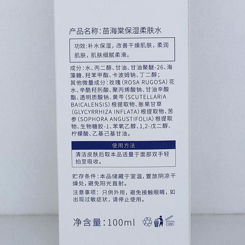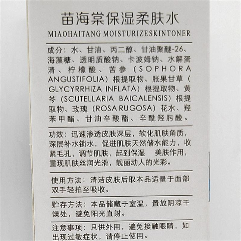 苗海棠 保湿柔肤水100ml 软化角质,补水锁水,保湿美肤,收紧毛孔,丝润光滑