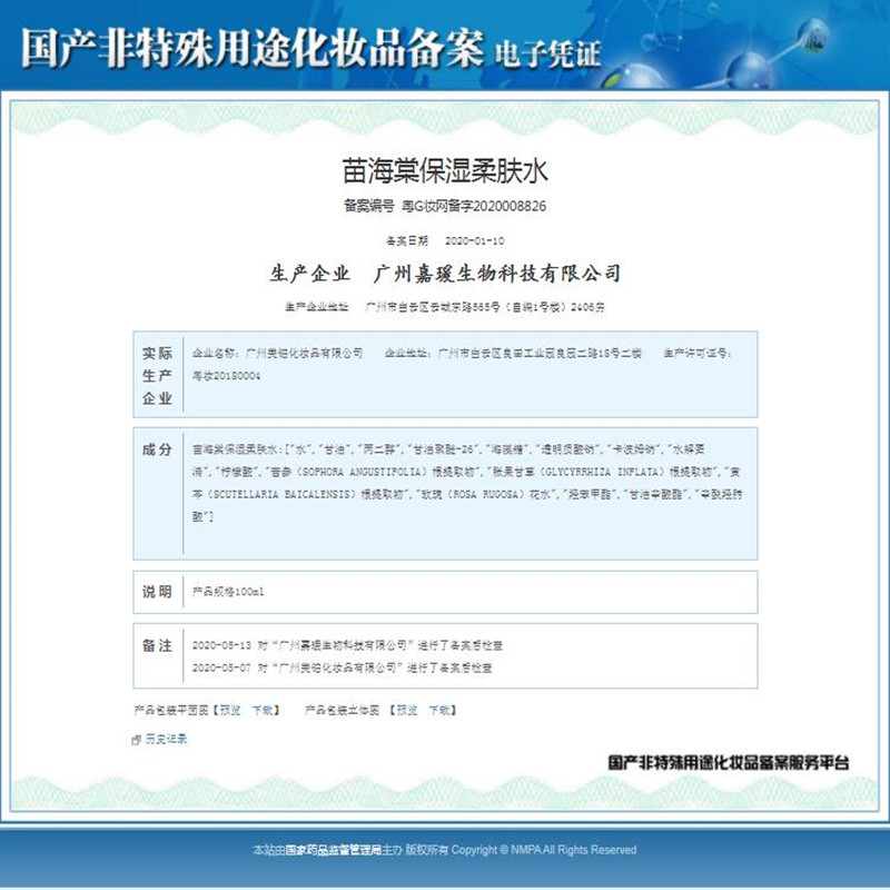 苗海棠 皙润仙颜精华水100ml(神仙水)补水修护保湿