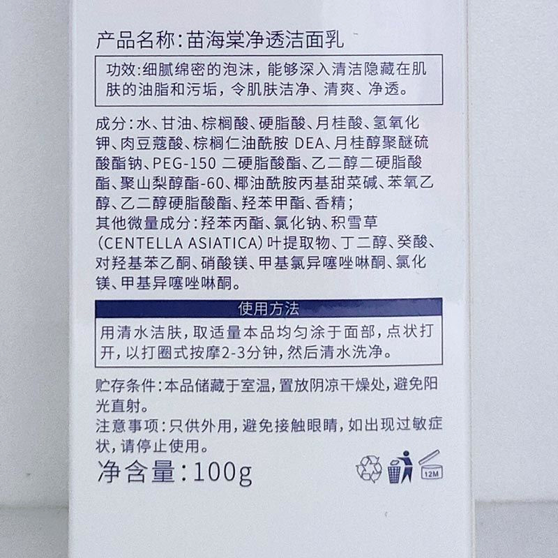 苗海棠 净透洁面乳100g 深层洁肤、清洁污垢、促进肌肤活力、柔软细滑