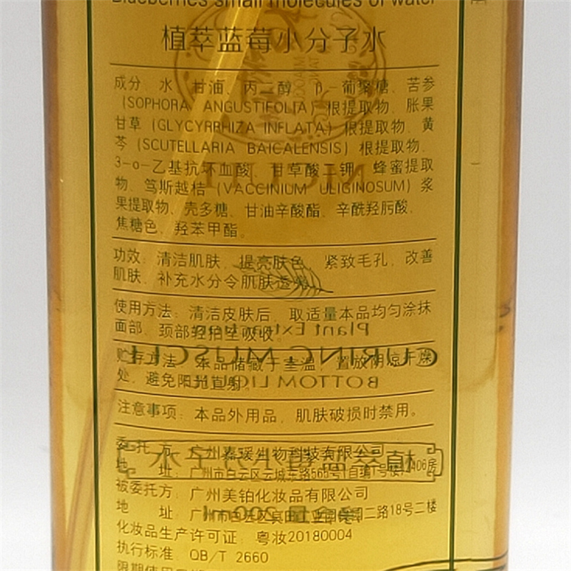 苗翠堂 蓝莓小分子水200ml 二次清洁肌肤,提亮肤色,紧致毛孔,水分透亮