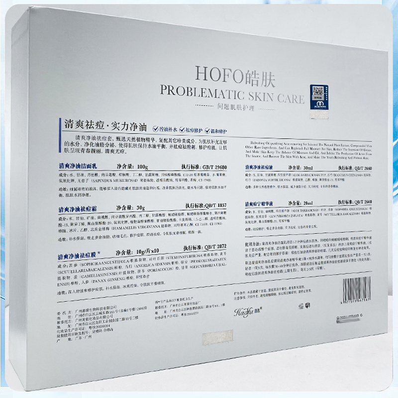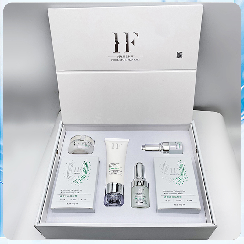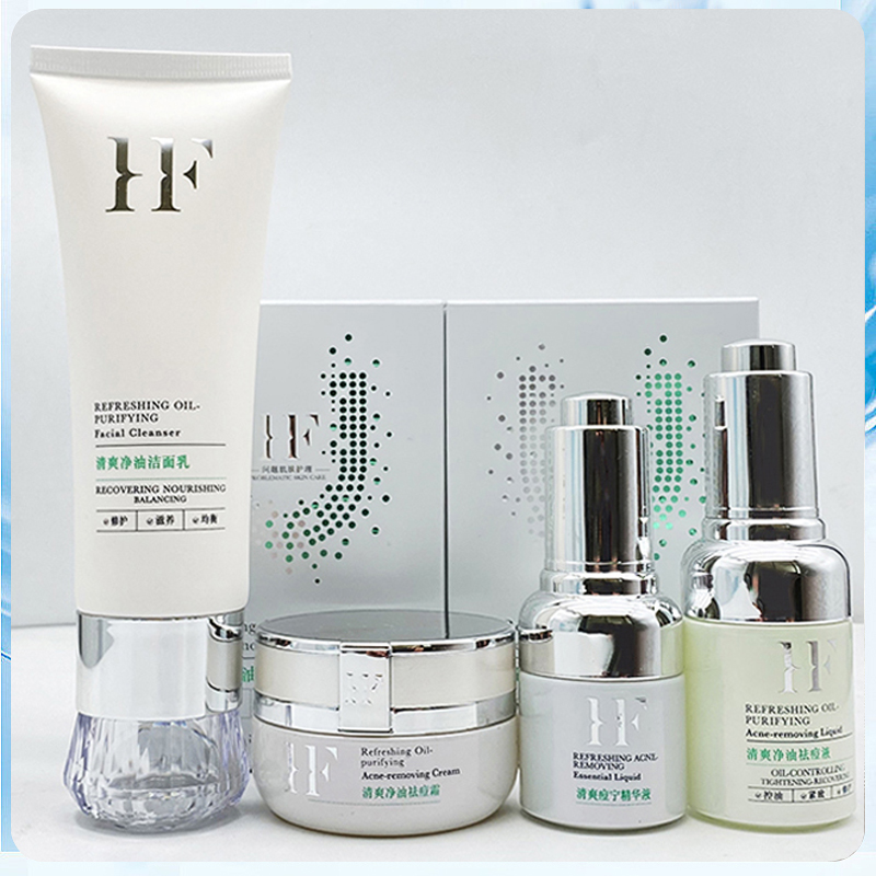 (1.净痘洁面乳100g+2.净痘精华液25ml+3.净痘舒颜液30ml+4.净痘修护霜30g+5.净痘舒缓膜10g*12袋)彻底改善毛孔深层素,净化肌肤,抑制过盛油脂分泌,对各种暗疮、粉刺迅速改善,降低留印的可能性,从根源解决问题