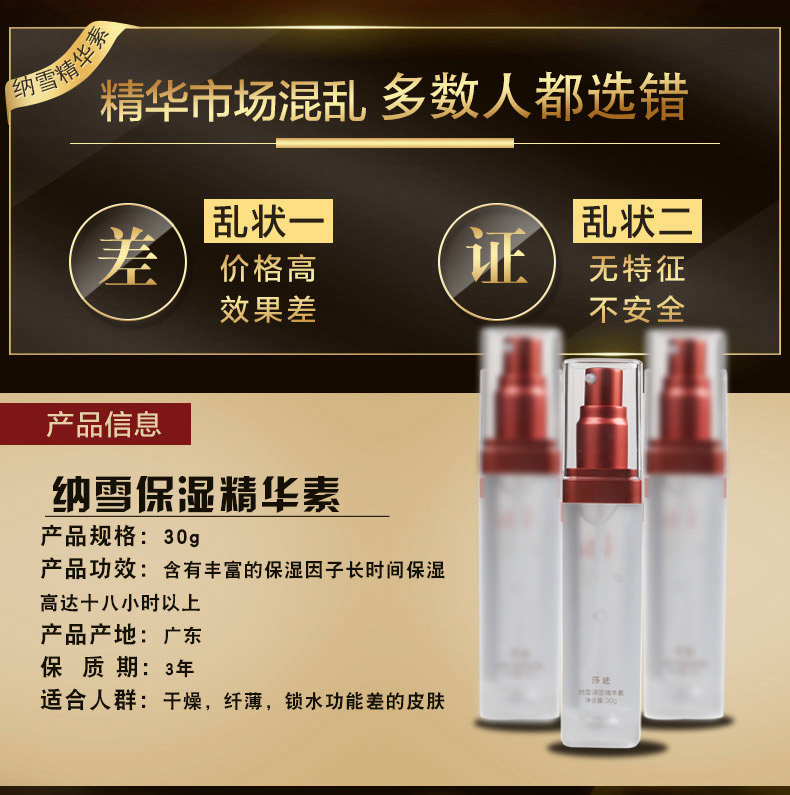 莎迹 纳雪保湿精华素30g 滋润保湿、强韧肌底、提拉紧致、饱满嫩滑、改善干燥/松弛/暗沉/粗糙肌肤