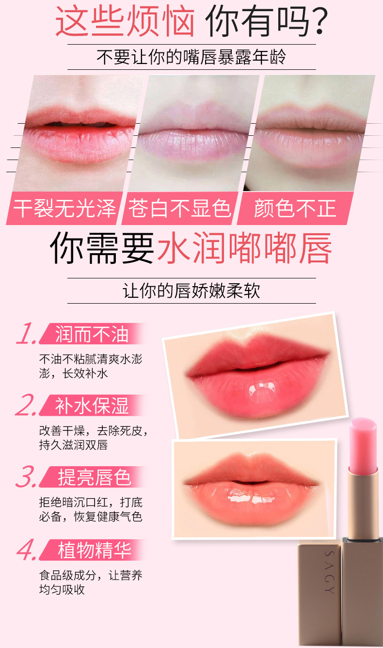 营养护唇,柔软滋润,立体丰唇,点抹鲜润粉嫩唇色,绽放青春魅力