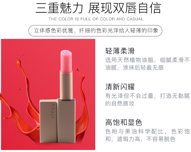 莎迹 唇膏3g(红色)营养护唇、润而不腻、提亮唇色、改善唇部干裂脱皮、持久滋润双唇、鲜润粉嫩