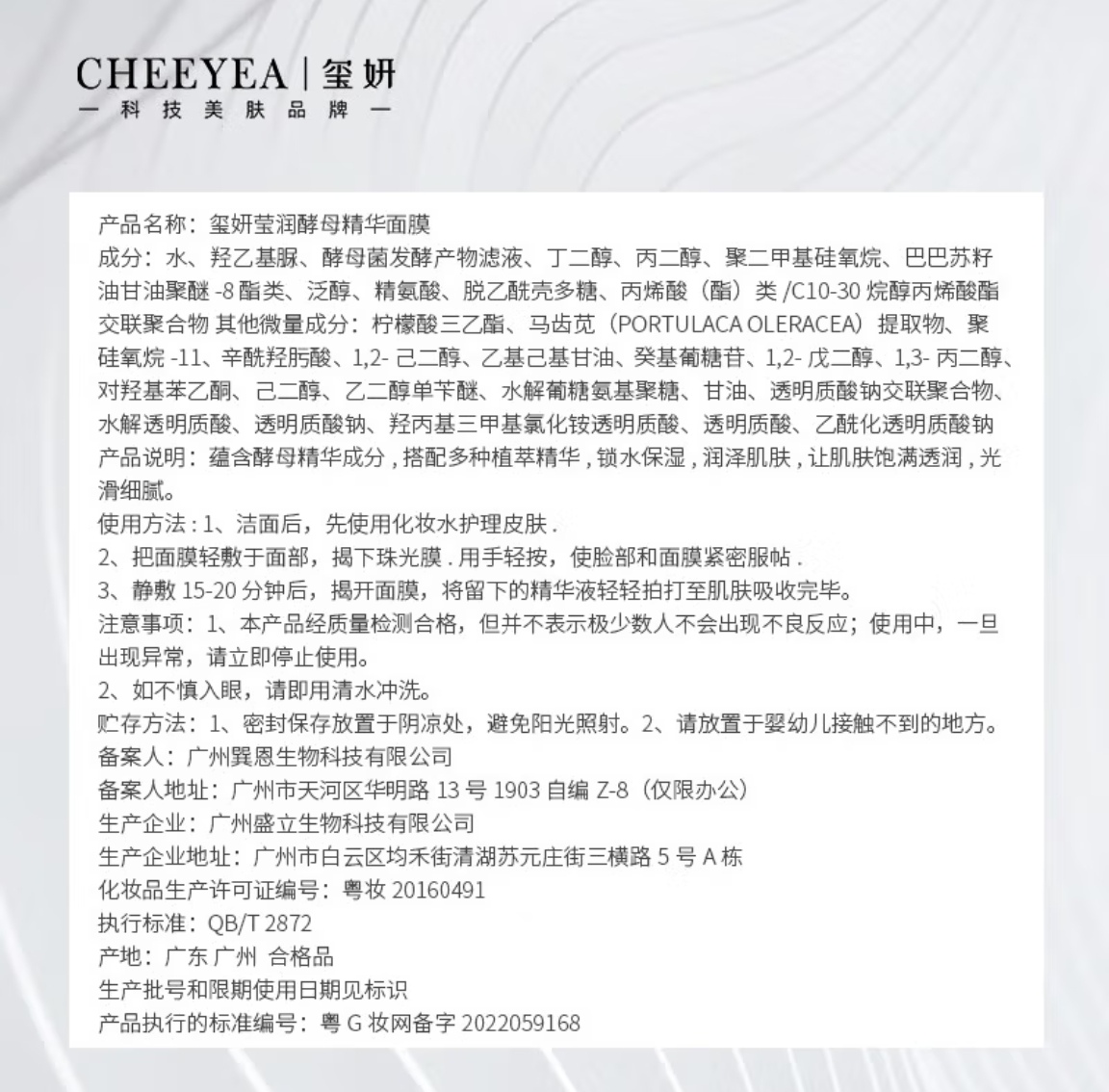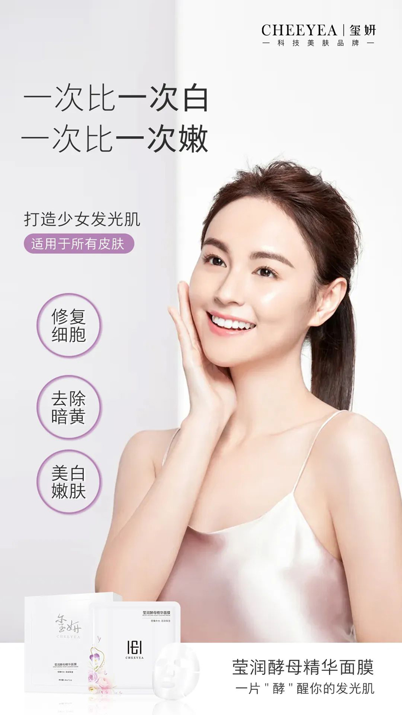 玺妍 莹润酵母精华面膜28ml*5片 修护表皮、祛黄提亮、嫩白美肌、锁水保湿