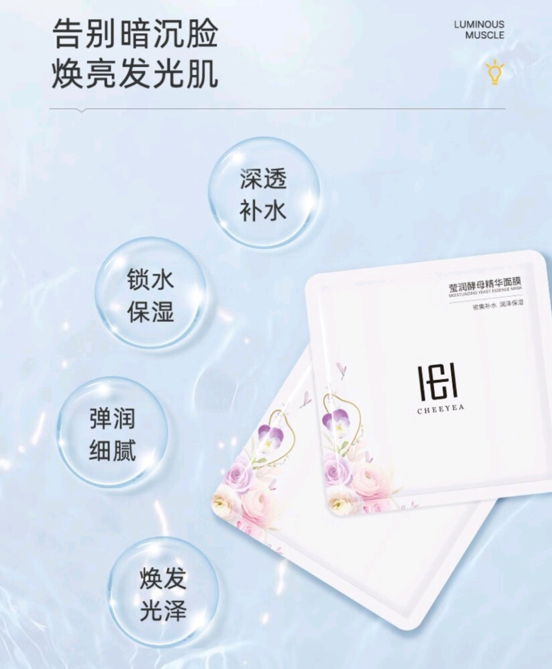1.轻薄:厚度仅0.1毫米犹如一层隐形肌 2.服帖:360°完美贴合肌肤轮廓渗透吸收 3.渗透:渗透力16倍吸附精华液 4.锁水:24H超长效保湿生物防护网减少水分流失。蕴含酵母精华成分,搭配多种植萃精华,锁水保湿,润泽肌肤,让肌肤饱满透润,光滑细腻