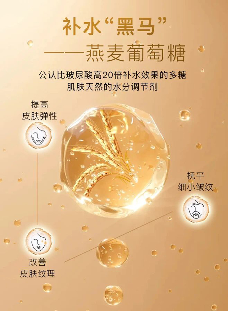 帮助肌肤重塑年轻轮廓的乳,含高浓度弹力蛋白重塑面部轮廓,天然抗皱成分燕麦葡聚糖,防止真性皱纹,体验时光逆转,青春常在
