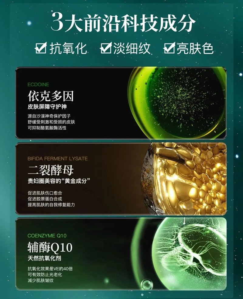 采用小分子科技 ,可让精华小分子穿透表皮层,直达真皮层,从肌底开始修护肌肤;轻盈丝缎质地,深入渗透,改善肌底自我修护,加速肌底新生,更促生胶原