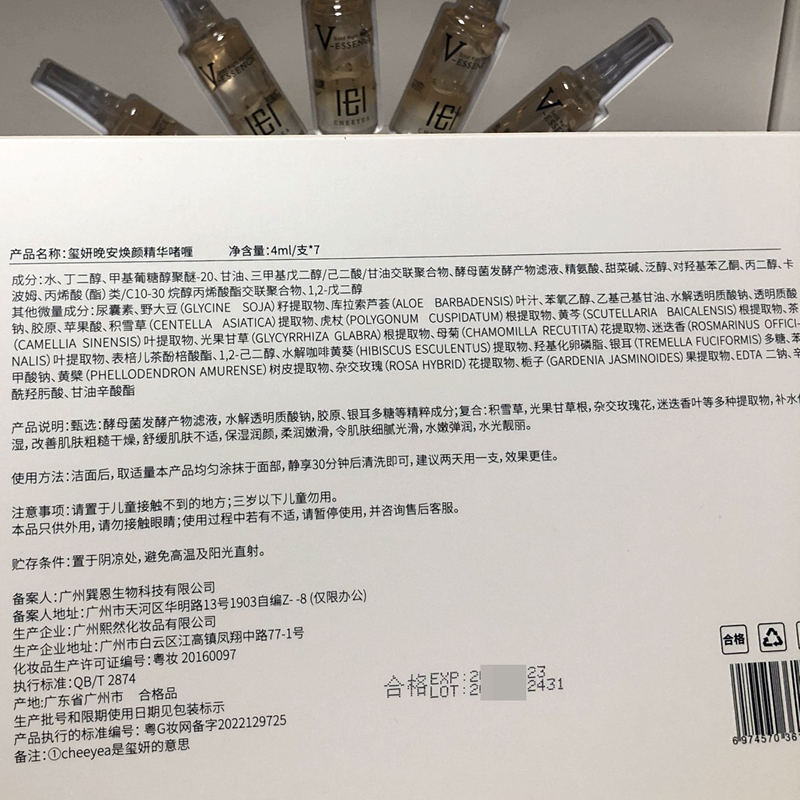 玺妍 晚安焕颜精华啫喱4ml*7支 舒缓修护、减少泛红、强韧屏障、淡化痘印