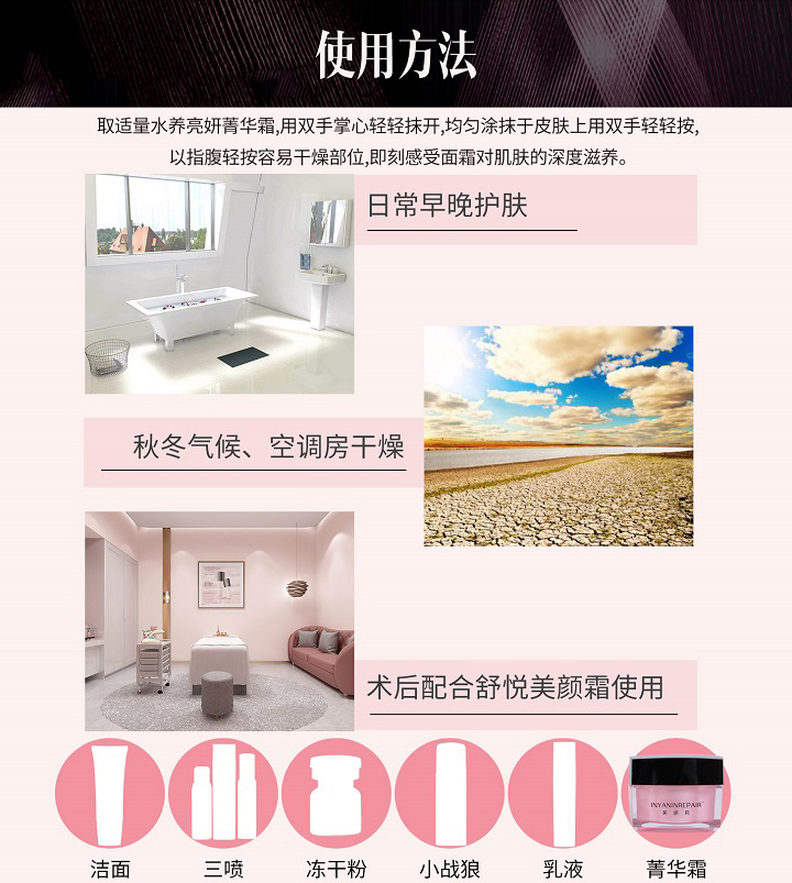为肌肤补充多种营养,及时帮助对抗肌肤干燥问题,带给肌肤深层润泽滋养,紧致饱满,强力改善干燥,粗糙、脱屑等缺水导致的肌肤问题。是减斑的修护滋养面霜。