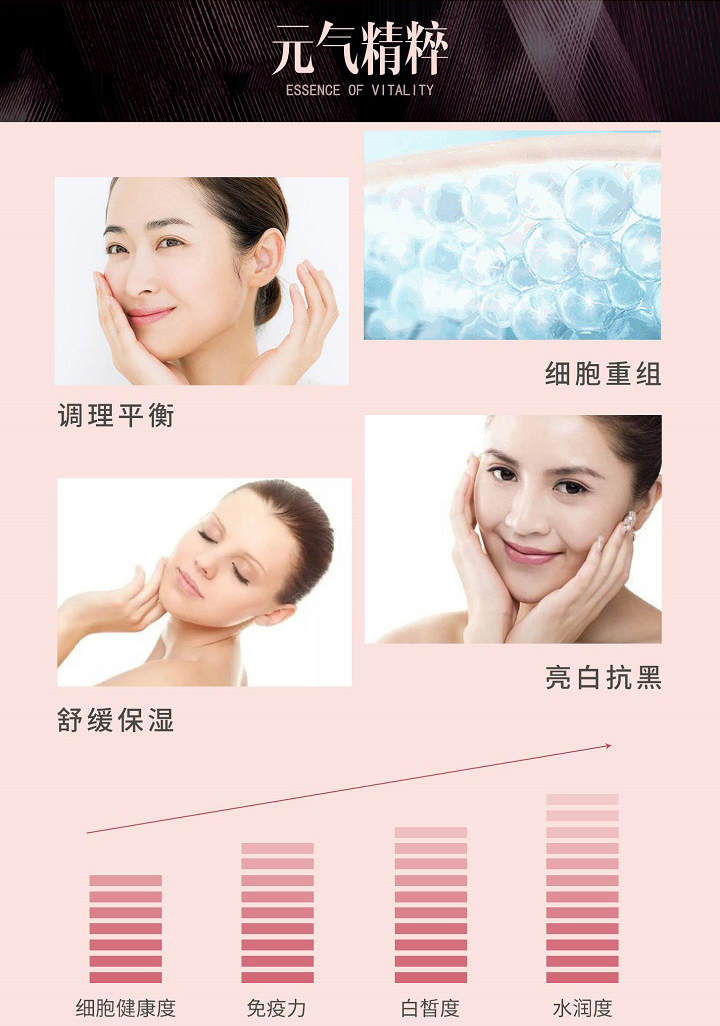 多种天然植物精粹、清爽质地、易于吸收、深润修护、紧致肌肤、提亮保湿、令肌肤透现光彩活力