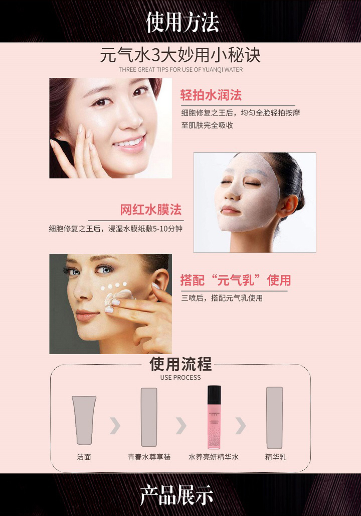 滋润缺水皮肤,锁紧皮肤水分。莹润,匀亮肌肤,弹嫩,使肌肤绽现柔润光泽