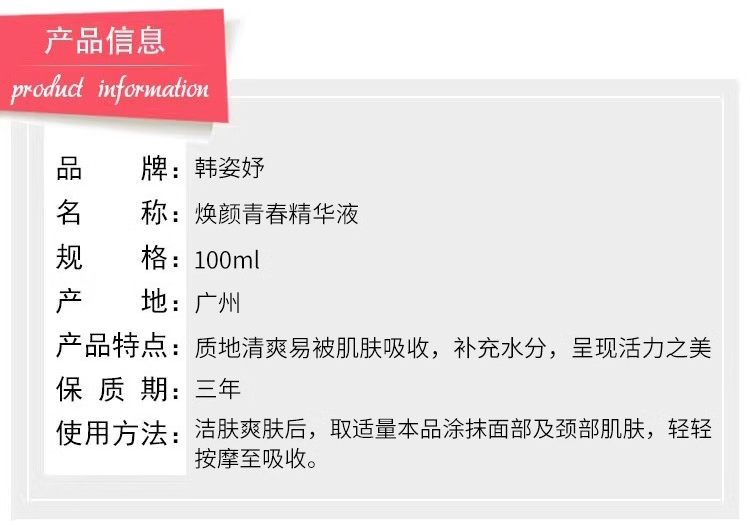 韩姿妤 焕彩青春精华液100ml 质地清爽、易吸收、补充水分、活力滋养