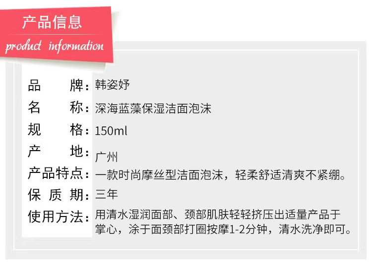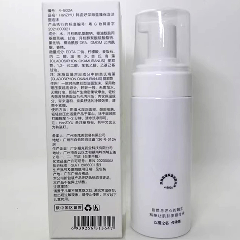 韩姿妤 深海蓝藻保湿洁面泡沫150ml 去除污垢、清洁毛孔、温和舒适、清爽不紧绷