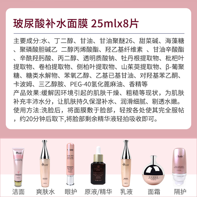 伊尔美韵 玻尿酸补水面膜25ml*8片 改善干燥/粗糙肌肤,持久保湿,润滑细腻,剔透水嫩