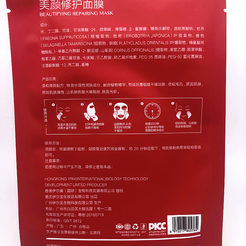 伊尔娜美 美颜修护面膜25ml*8片 改善粗糙/干燥肌肤,收缩毛孔,紧实弹性,水嫩靓丽