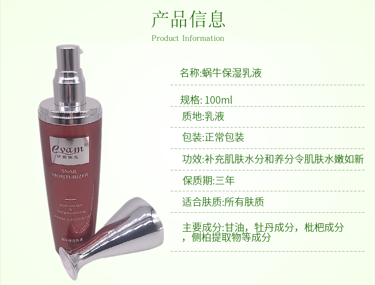 伊尔娜美 蜗牛保湿乳液100ml 质地弹润,水感柔滑,持久保湿补水,紧实肌肤,弹力水润