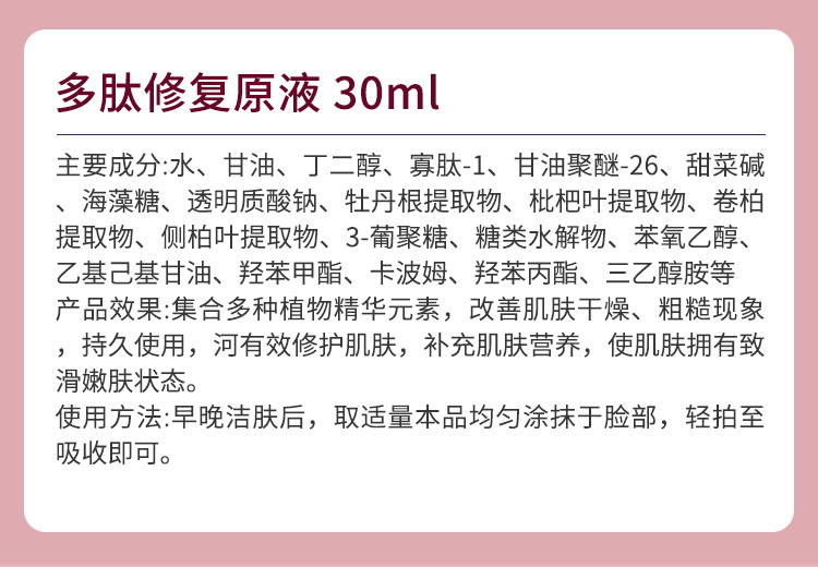 伊尔娜美 多肽修复原生液30ml 补充营养,改善肌肤干燥、粗糙,柔滑嫩肤