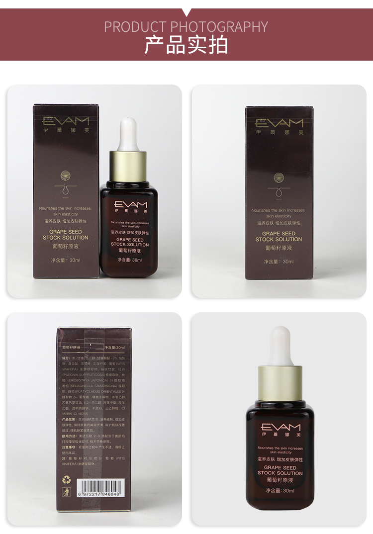 伊尔娜美 葡萄籽原生液30ml 细腻柔滑,滋润光滑,增加弹性,改善细纹,紧致柔软