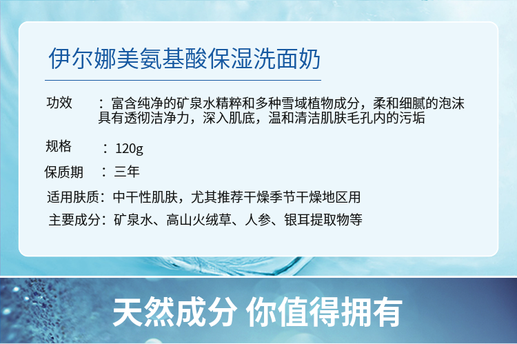 伊尔娜美 氨基酸保湿洗面奶120ml 洁净污垢,改善干燥,水嫩光泽,紧实弹性