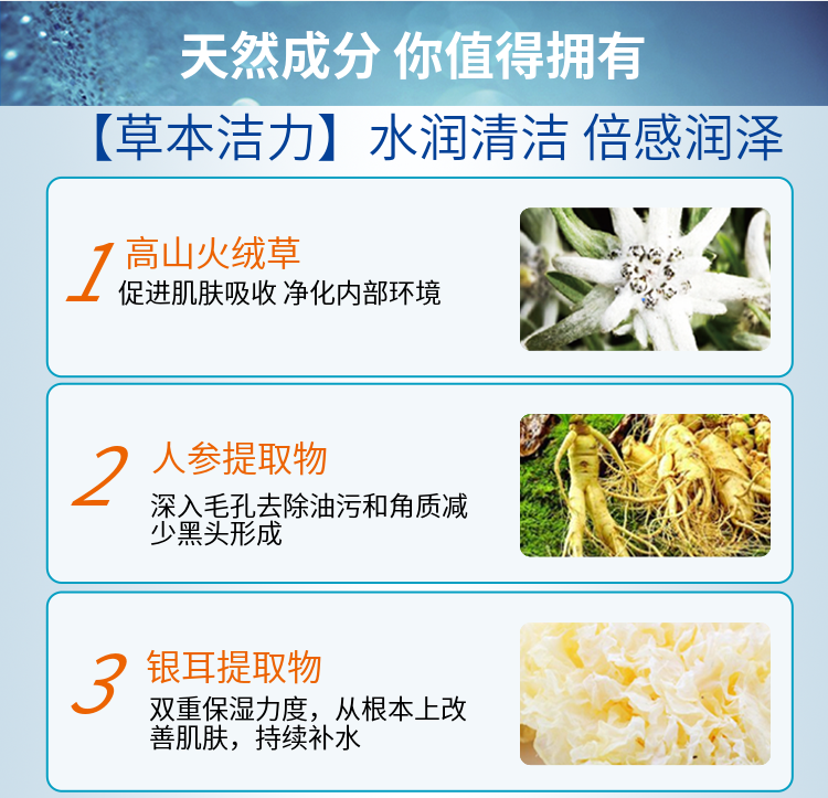 清润绵密泡泡,去除皮肤上的污垢、彩妆残留物及多余的油脂,有助于保持皮肤清爽舒适、柔嫩丝滑质感